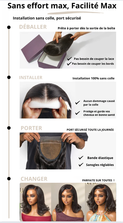 Unlike traditional wigs with glue or combs that pull on your scalp, our wigs feature a 3D breathable cap without harsh adhesives , making them super lightweight, comfortable and irritation-free , even for sensitive scalps .